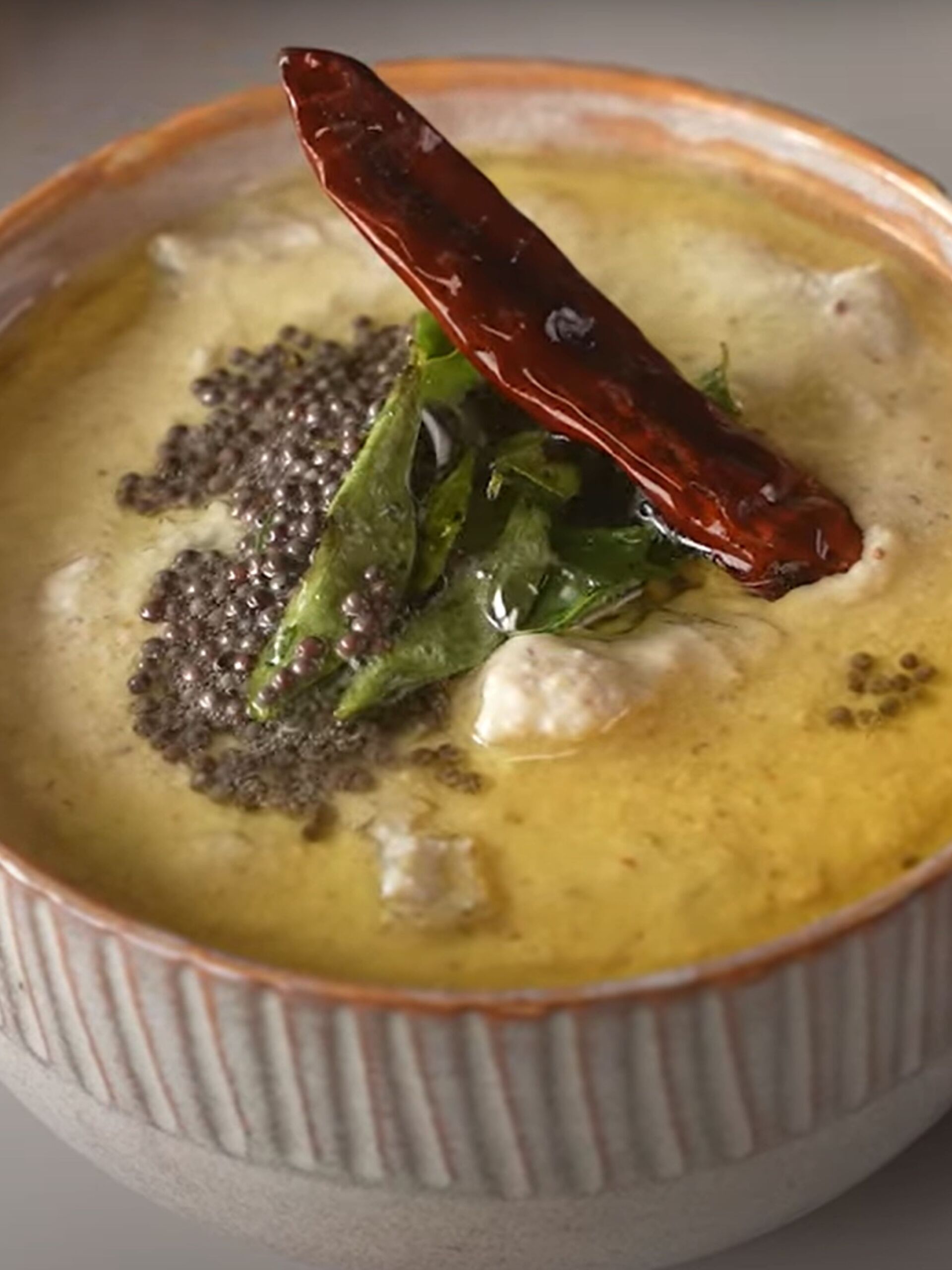 From Gujarat’s kitchens, this tangy yogurt curry with a spicy tempering is soothing, slightly fiery, and pairs beautifully with rice, a comfort dish with character.