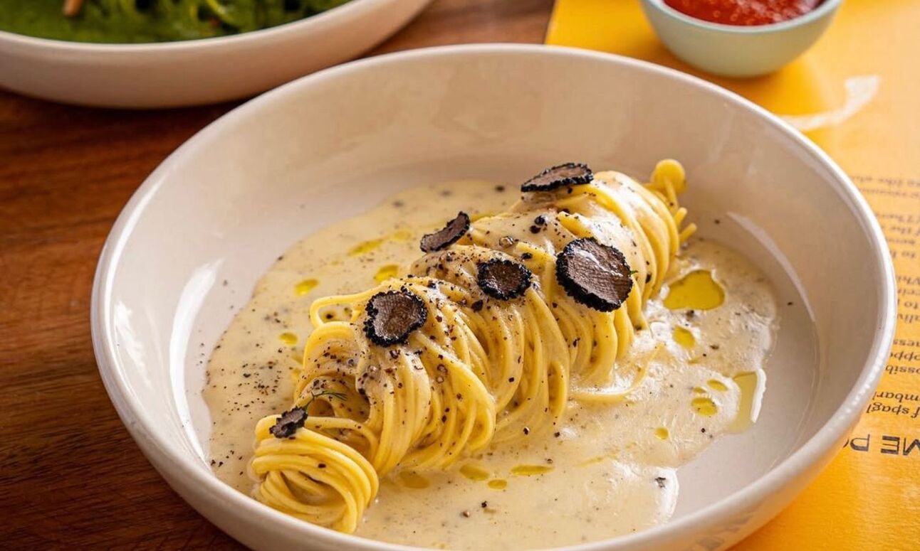 🍽️ Indulgent delights – White Asparagus Carpaccio, tableside Truffle Pasta & Hazelnut Tiramisu