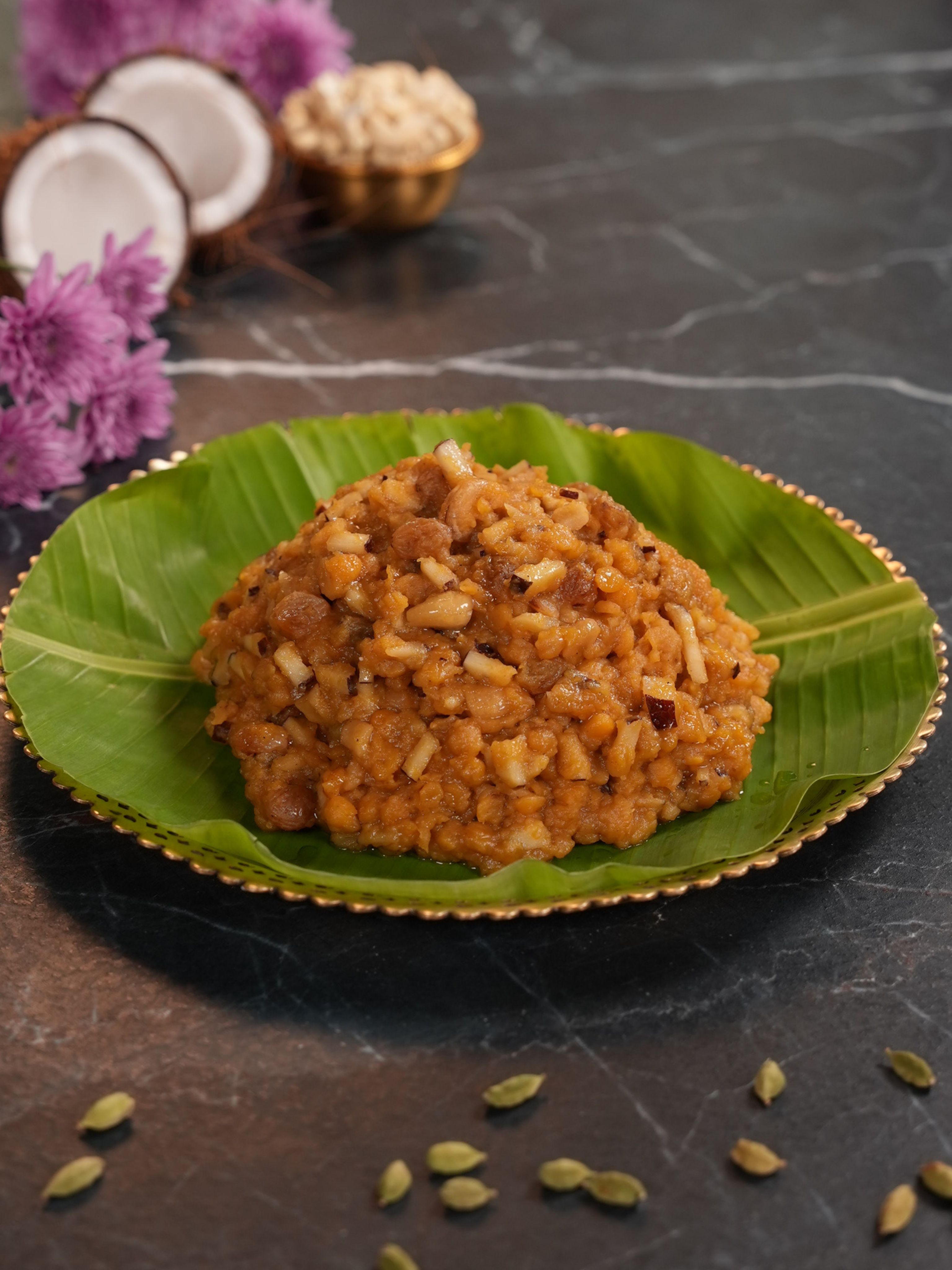 Rich with chana dal, jaggery, coconut, and ghee, this Karnataka sweet is often prepared during Ugadi and festive offerings. Soft, aromatic, and comforting, it brings warmth and tradition to the new year table.