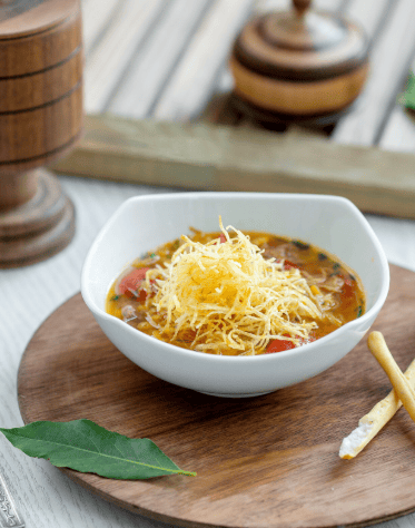 The OG of Indian restaurant soups. A crowd-pleaser that’s light, sweet, and endlessly satisfying — best enjoyed while watching your comfort show (we won’t judge if it’s Friends again).