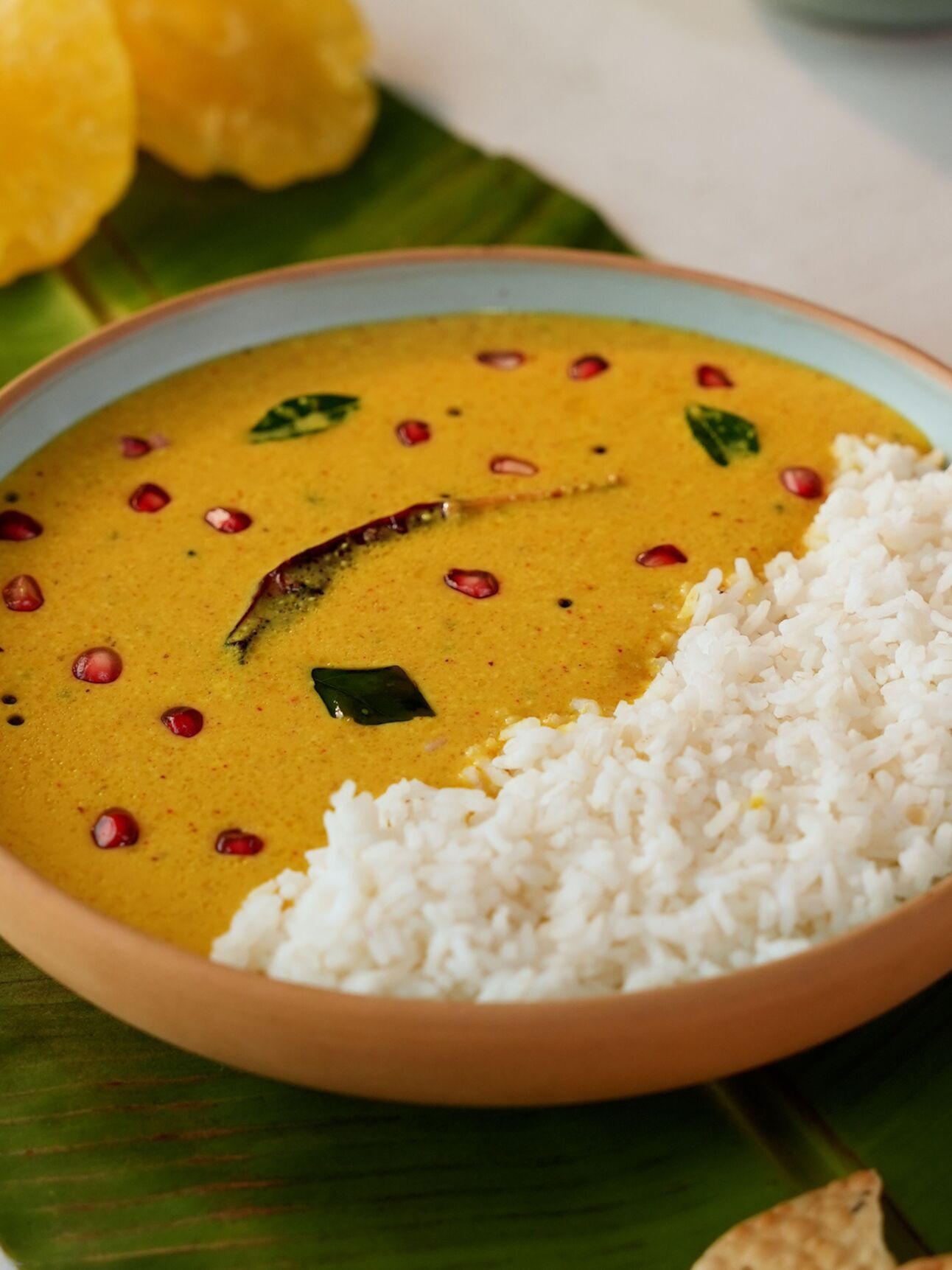 Sweet, tangy, and creamy, this yogurt-based dish with chunks of pineapple is a refreshing twist to traditional pachadi. A true summer gem.