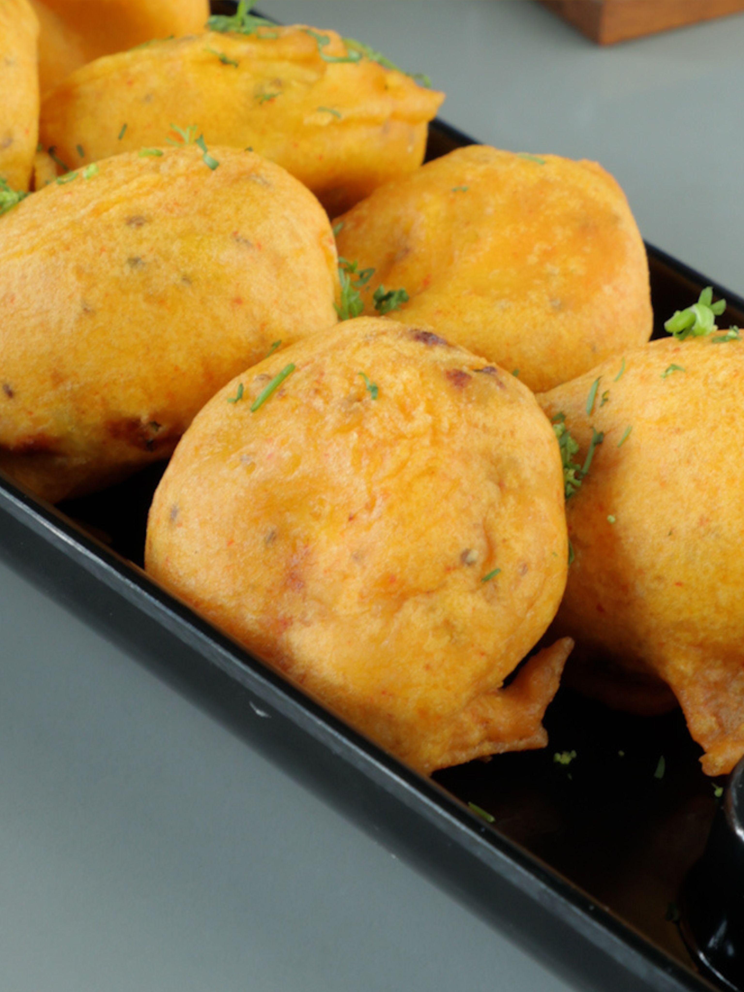 Soft, fluffy lentil fritters filled with seasoned hung curd create an amazing medley that is both light and satisfying, often enjoyed as a snack or part of a festive spread.